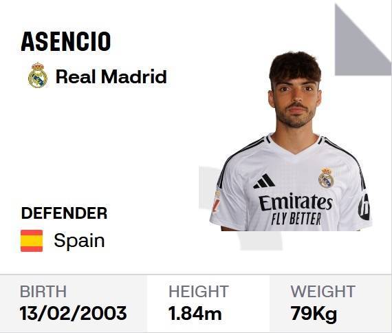 这位22岁的中卫上赛季上半程还主要为皇马卡斯蒂利亚效力,但由于皇马一线队的中卫伤病潮而被启用。